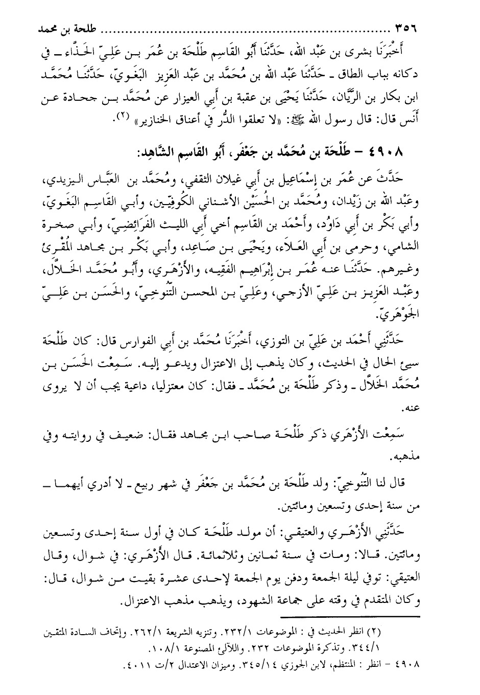 . 4908- طلحة بن محمد بن جعفر، أبو القاسم الشاهد [2] :