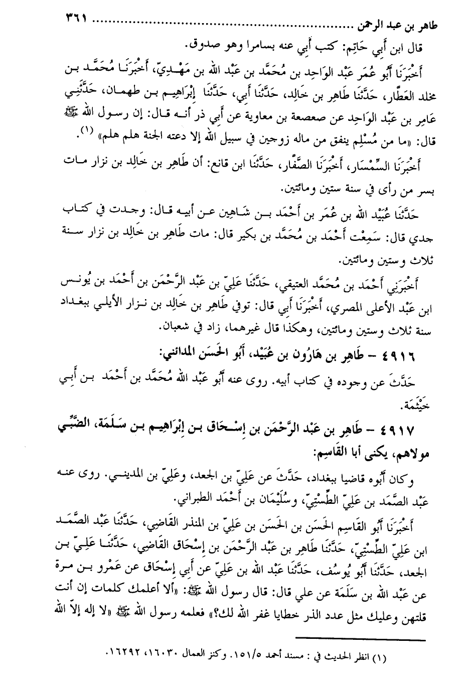 4917- طاهر بن عبد الرحمن بن إسحاق بن إبراهيم بن سلمة، الضبي مولاهم، يكنى أبا القاسم: