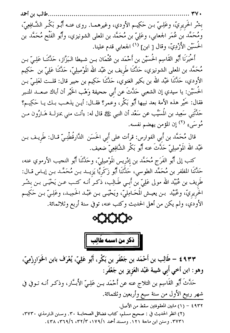4933- طالب بن أحمد بن جعفر بن بكر، أبو علي، يعرف بابن الخوارزمي، وهو: ابن أخي أبي شيبة عبد العزيز بن جعفر: