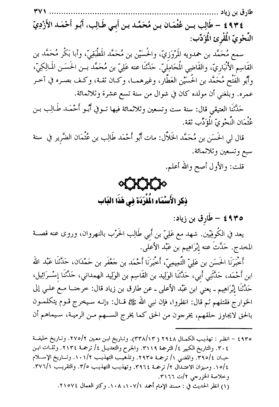 4934- طالب بن عثمان بن محمد بن أبي طالب، أبو أحمد الأزدي النحوي المقرئ المؤدب: