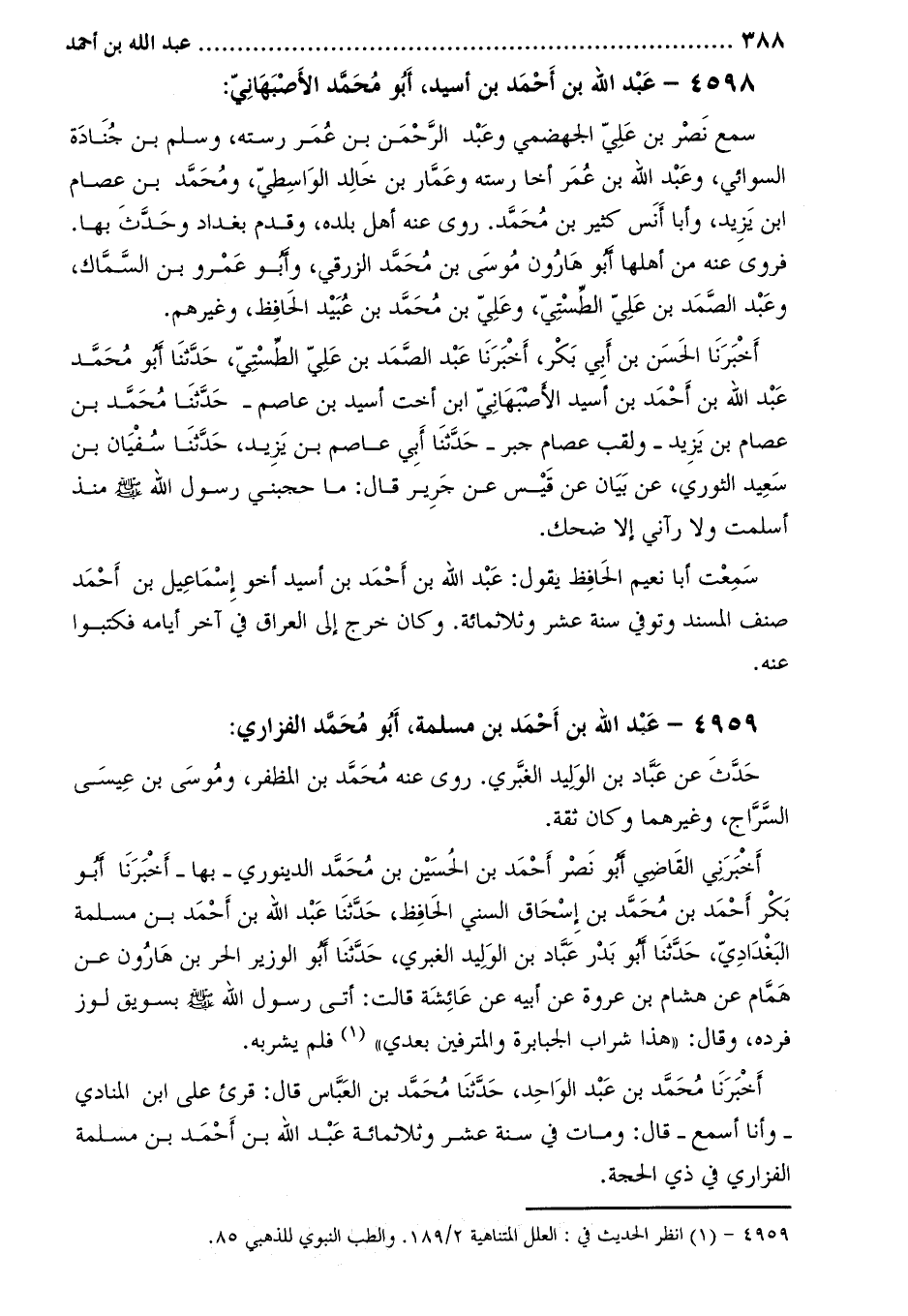 4958- عبد الله بن أَحْمَد بن أسيد، أبو مُحَمَّد الأصبهاني: