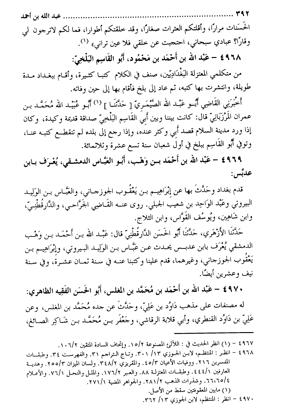 4970- عَبْدُ اللَّهِ بْنُ أَحْمَدَ بْنِ مُحَمَّدِ بْنِ المغلس، أبو الْحَسَن الفقيه الظاهري [4] :