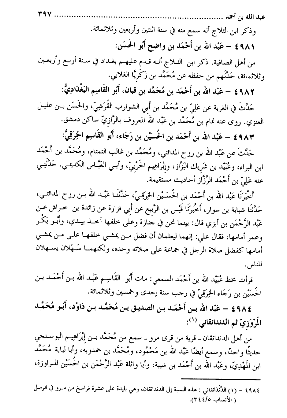 [1] 4984- الدّندانقاني: هذه النسبة إلى الدندانقان، وهي بليدة على عشرة فراسخ من مرو في الرمل (الأنساب 5/344) .