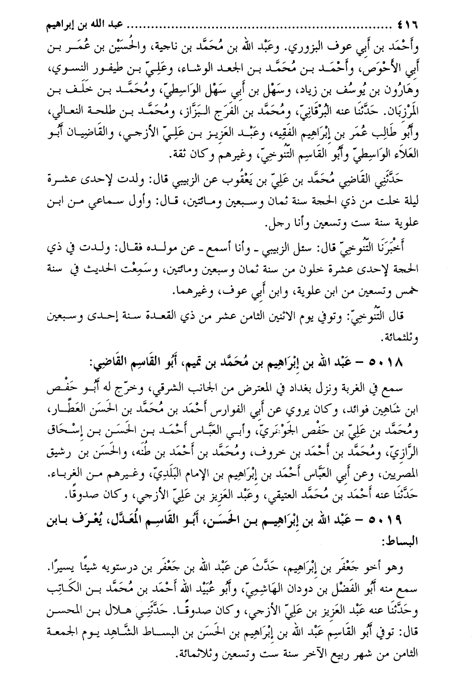 5019- عبد اللَّه بْنُ إِبْرَاهِيمَ بن الْحَسَن، أبو القاسم المعدل، يعرف بابن البساط:
