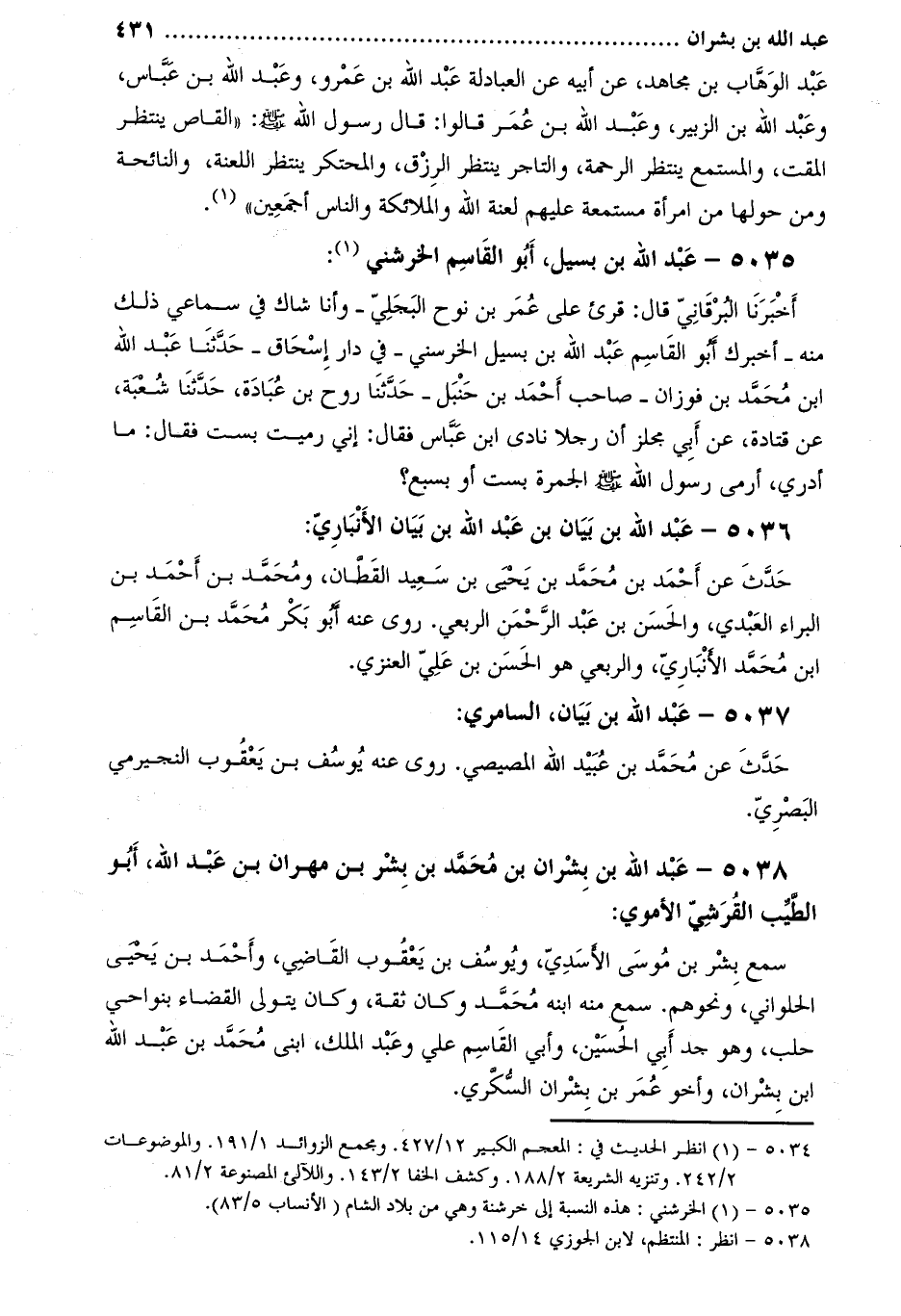 5038- عَبْد اللَّه بْن بشران بْن مُحَمَّد بْن بشر بْن مهران بْن عَبْد اللَّه، أَبُو الطيب القرشي الأموي [3] :
