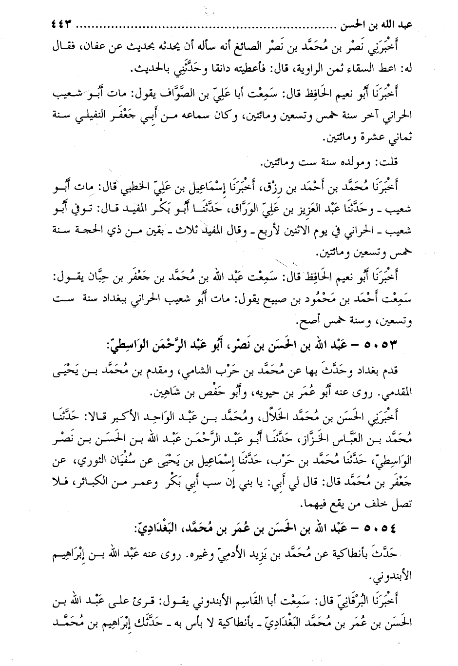 5053- عبد اللَّه بن الْحَسَن بن نصر، أبو عَبْد الرَّحْمَن الواسطي: