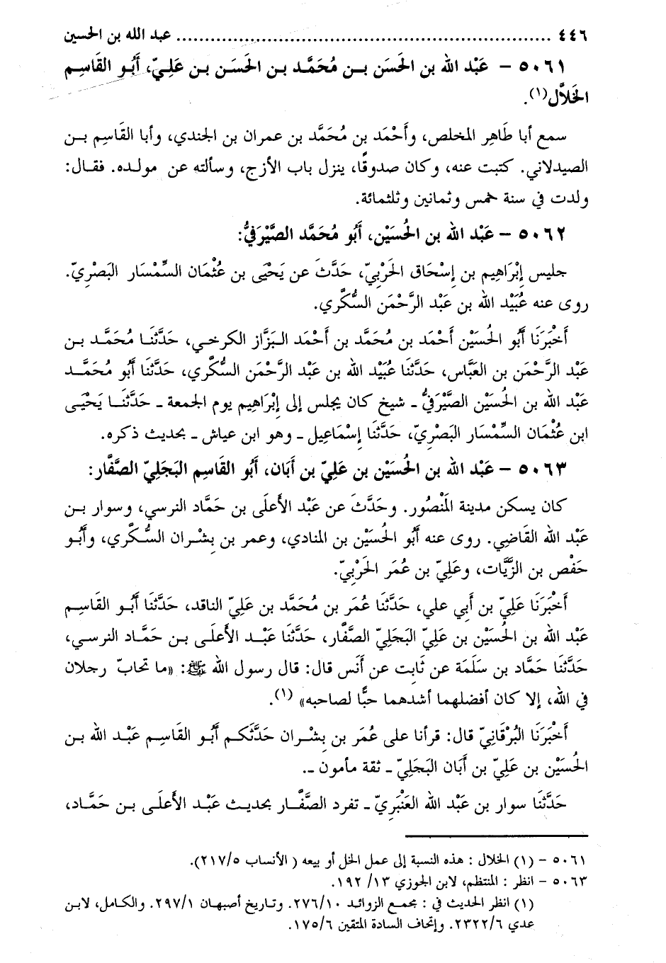 5061- عَبْد اللَّه بْن الْحَسَن بْن مُحَمَّد بْن الْحَسَن بْن علي، أبو القاسم الخلال [1] .