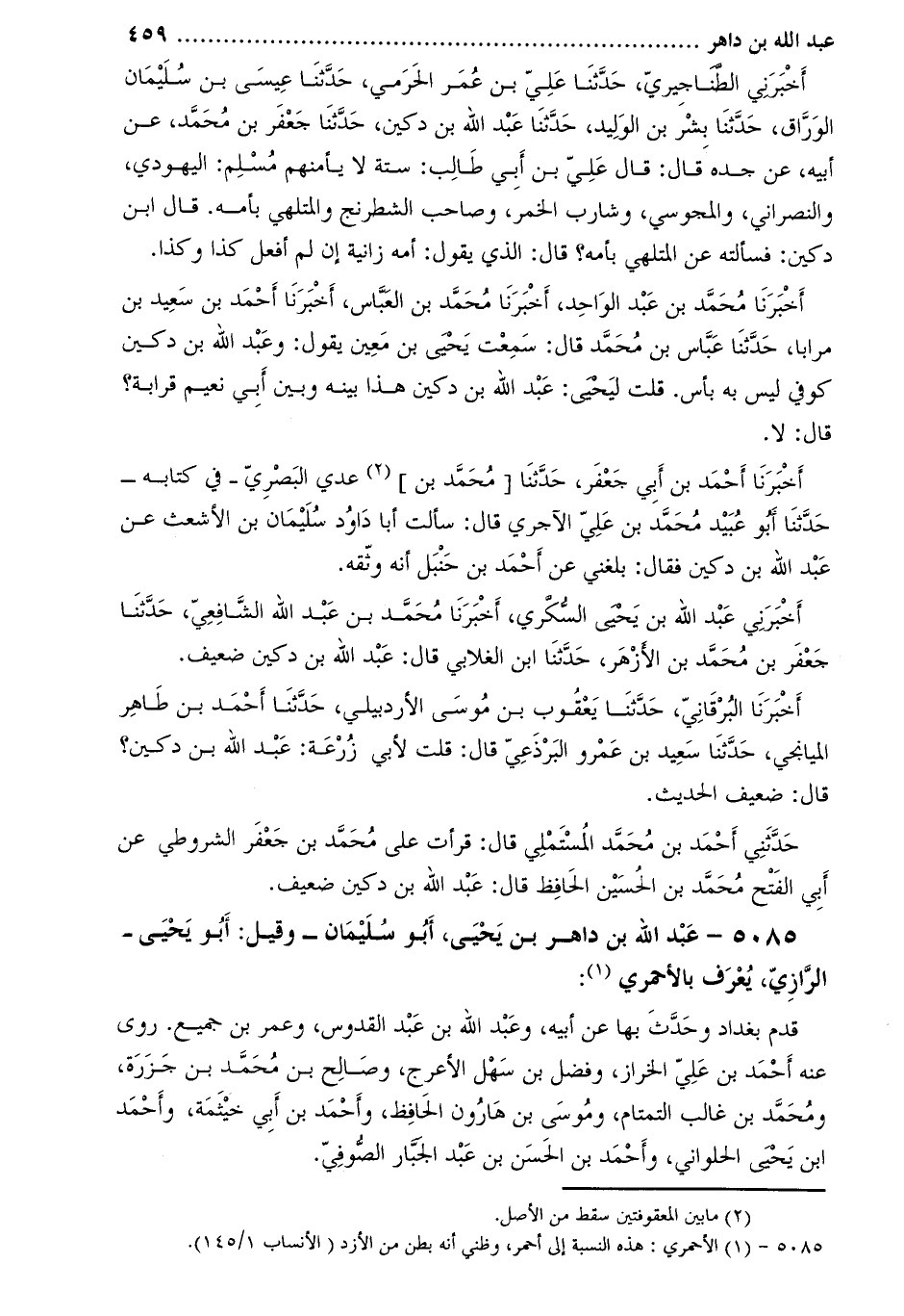 5085- عبد اللَّه بن داهر بن يَحْيَى، أبو سليمان- وقيل: أبو يَحْيَى- الرازي، يعرف بالأحمري [2] :