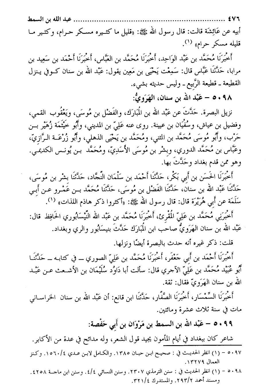 عَبْدُ اللَّهِ بْنُ سِنَانٍ الْهَرَوِيُّ صَاحِب ابن المبارك حدث بنيسابور والري وبغداد.