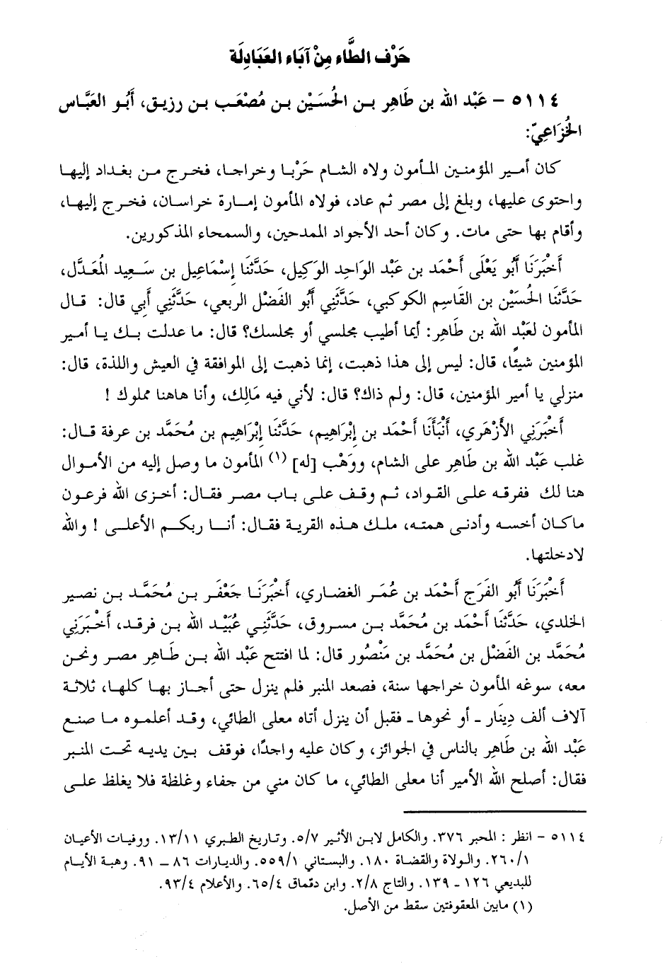 5114- عَبْد اللَّه بْن طَاهِر بْن الْحُسَيْن بْن مصعب بن رزيق، أبو العباس الْخُزَاعِيّ [1] :