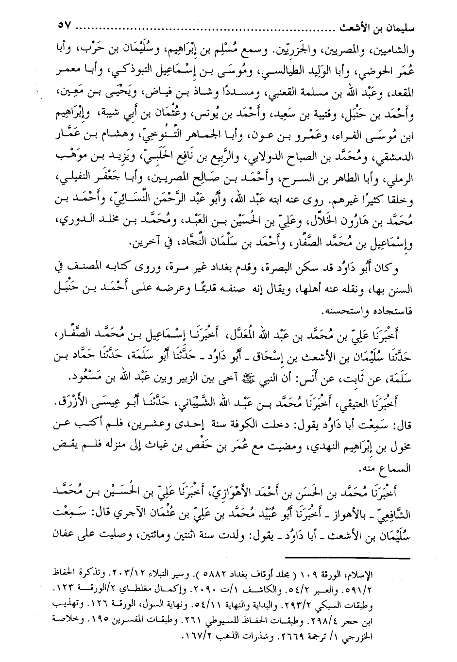 والشاميين، والمصريين، والجزريين. وسمع مسلم بن إبراهيم، وسليمان بن حرب، وأبا عمر الحوضي، وأبا الوليد الطيالسي، وموسى بن إسماعيل التبوذكي، وأبا معمر المقعد، وعبد الله بن مسلمه القعنبي، ومسددا وشاذ بن فياض، ويحيى بن معين، وأحمد بن حنبل، وقتيبه بن سعيد، وأحمد بن يونس، وعثمان بن أبي شيبة، وإبراهيم ابن موسى الفراء، وعمرو بن عون، وأبا الجماهر التنوخي، وهشام بن عمار الدمشقي، ومحمد بن الصباح الدولابي، والربيع بن نافع الحلبي، ويزيد بن موهب الرملي، وأبا الطاهر بن السرح، وأحمد بن صالح المصريين، وأبا جعفر النفيلي، وخلقا كثيرا غيرهم. روى عنه ابنه عبد الله، وأبو عبد الرحمن النسائي، وأحمد بن محمد بن هارون الخلّال، وعليّ بن الحسين بن العبد، ومحمد بْن مخلد الدوري، وإسماعيل بْن مُحَمَّد الصفار، وأَحْمَد بن سلمان النجاد، في آخرين.