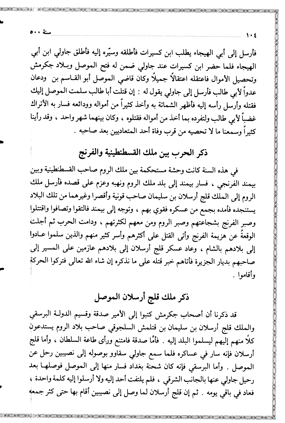 في هذه السنة كانت وحشة مسحكمة بين ملك الروم صاحب القسطنطينية وبين بيمند الفرنجي فسار بيمند إلى بلد ملك الروم ونهبه وعزم على قصده فأرسل ملك الروم إلى الملك قلج أرسلان بن سليمان صاحب قونية وأقصرا وغيرهما من تلك البلاد يستنجده فأمده بجمع من عسكره فقوي بهم وتوجه إلى بيمند فالتقوا وتصافوا واقتتلوا وصبر الفرنج بشجاعتهم وصبر الروم ومن معهم لكثرتهم ودامت الحرب ثم أجلت الوقعة عن هزيمة الفرنج وأتى القتل على أكثرهم وأسر كثير منهم والذين سلموا عادوا إلى بلادهم بالشام وعاد عسكر قلج أرسلان إلى بلادهم عازمين على المسير إلى صاحبهم بديار الجزيرة فأتاهم خبر قتله على ما نذكره إن شاء الله تعالى فتركوا الحركة وأقاموا