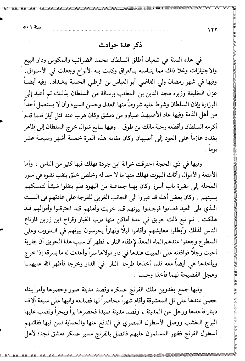 في هذه السنة في شعبان أطلق السلطان محمد الضرائب والمكوس ودار البيع والاجتيازات وغلا ذلك مما يناسبه بالعراق وكتبت به الألواح وجعلت في الأسواق