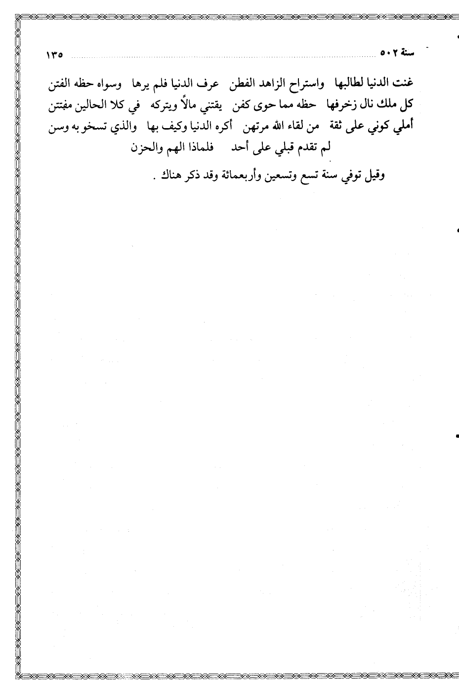 وقيل توفي سنة تسع وتسعين وأربعمائة وقد ذكر هناك