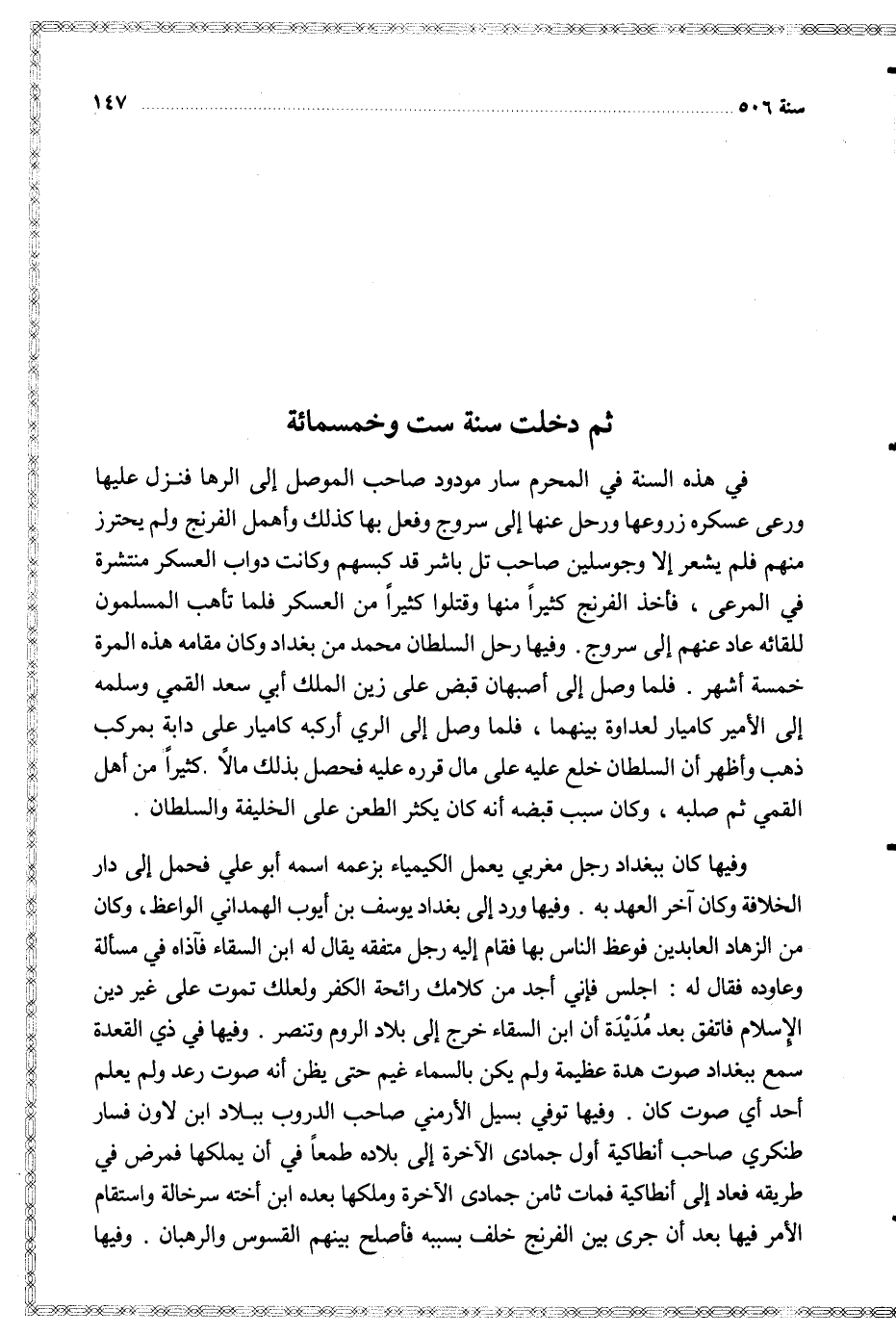 في هذه السنة في المحرم سار مودود صاحب الموصل إلى الرها فنزل عليها ورعى عسكره زروعها ورحل عنها إلى سروج وفعل بها كذلك وأهمل الفرنج ولم يحترز منهم فلم يشعر إلا وجوسلين صاحب تل باشر قد كسبهم وكانت دواب العسكر منتشرة في المرعى فأخذ الفرنج كثيرا منها وقتلوا كثيرا من العسكر فلما تأهب المسلمون للقائه عاد عنهم إلى سروج