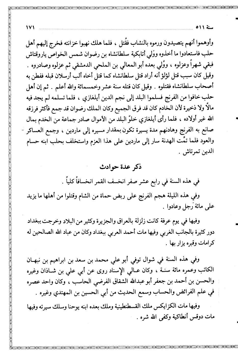 وفيها مات الكزايكس ملك القسطنطينية وملك بعده ابنه يوحنا وسلك سيرته وفيها مات دوقس أنطاكية وكفى الله شره