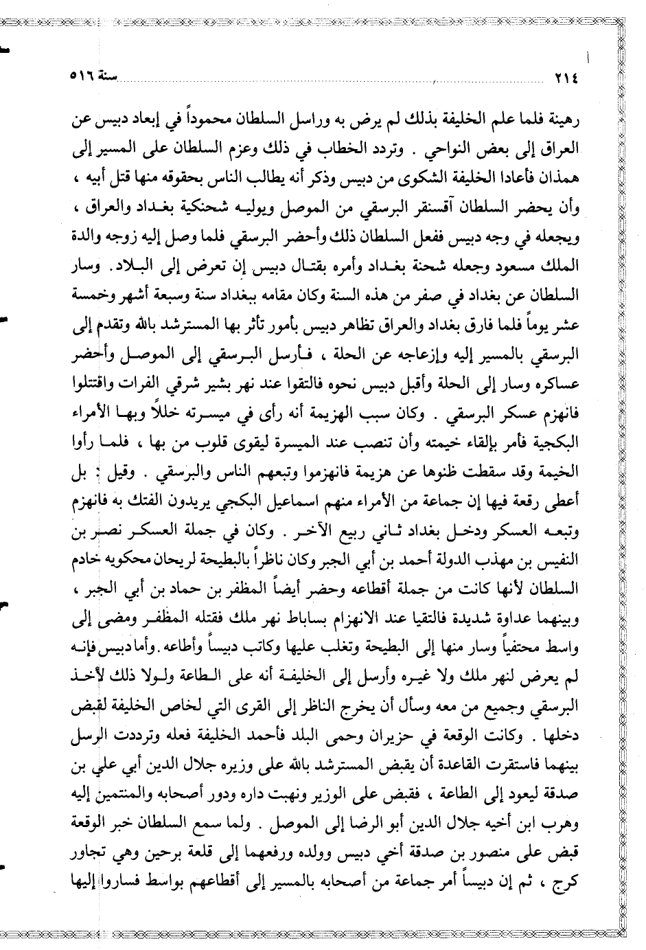 ولما سمع السلطان خبر الوقعة قبض على منصور بن صدقة أخي دبيس وولده ورفعهما إلى قلعة برحين وهي تجاوز كرج ثم إن دبيسا أمر جماعة من أصحابه بالمسير إلى أقطاعهم بواسط فساروا إليها