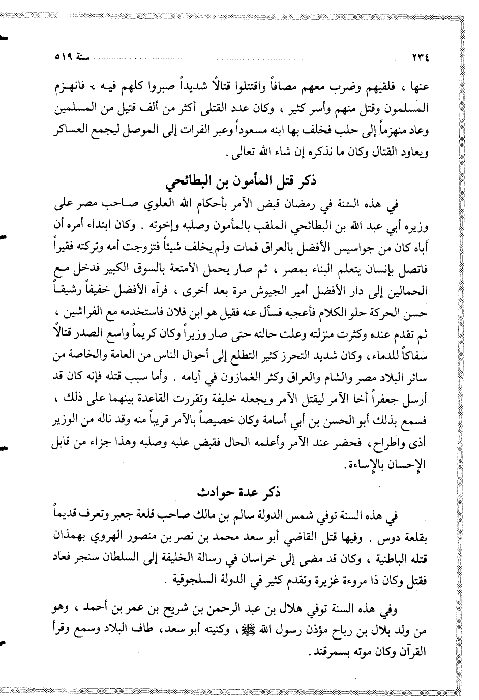 في هذه السنة في رمضان قبض الآمر بأحكام الله العلوي صاحب مصر على وزيره أبي عبد الله البطائحي الملقب بالمأمون وصلبه وإخوته