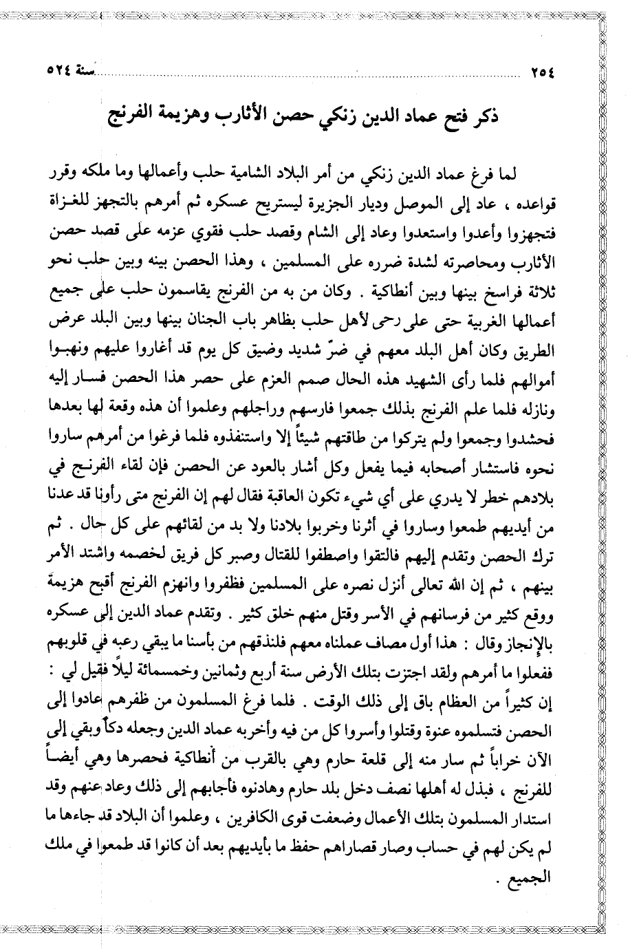 $ ذكر فتح عماد الدين زنكي حصن الأثارب وهزيمة الفرنج $