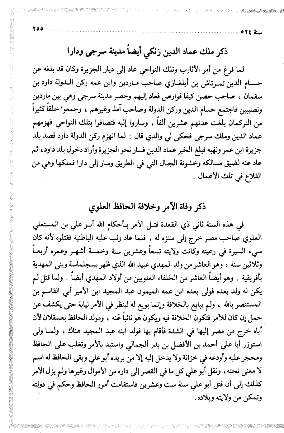 في هذه السنة ثاني ذي القعدة قتل الآمر بأحكام الله أبو علي بن المستعلي العلوي صاحب مصر خرج إلى منتزه له فلما عاد وثب عليه الباطنية فقتلوه لأنه كان سيء السيرة في رعيته وكانت ولايته تسعا وعشرين سنة وخمسة أشهر وعمره أربعا وثلاثين سنة وهو العاشر من ولد المهدي عبيد الله الذي ظهر بسجلماسة وبنى المهدية بإفريقية