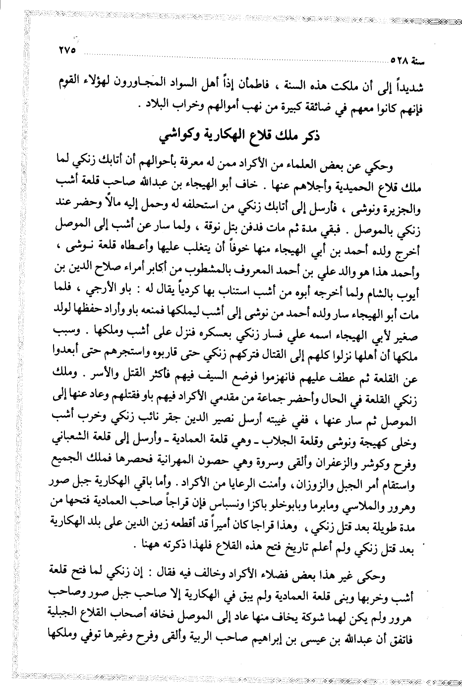 وأما باقي الهكارية جبل صور وهرور والملاسي ومابرما وبابوخلو باكزا ونسباس فإن قراجا صاحب العمادية فتحها من مدة طويلة بعد قتل زنكي وهذا قراجا كان أميرا قد أقطعه زين الدين على بلد الهكارية بعد قتل زنكي ولم أعلم تاريخ فتح هذه القلاع فلهذا ذكرته ههنا