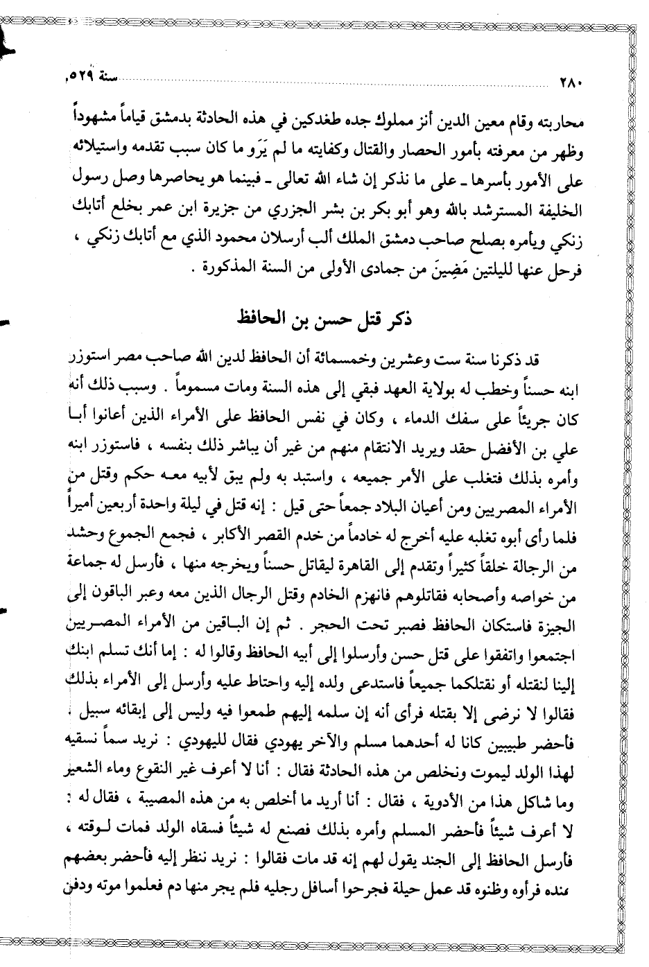 ثم إن الباقين من الأمراء المصريين اجتمعوا واتفقوا على قتل حسن وأرسلوا إلى أبيه الحافظ وقالوا له إما أنك تسلم ابنك إلينا لنقتله أو نقتلكما جميعا فاستدعى ولده إليه واحتاط عليه وأرسل إلى الأمراء بذلك فقالوا لا نرضى إلا بقتله فرأى أنه إن سلمه إليهم طمعوا فيه وليس إلى إبقائه سبيل