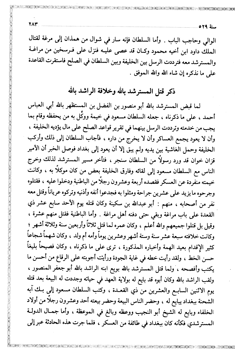 $ ذكر قتل المسترشد بالله وخلافة الراشد بالله $