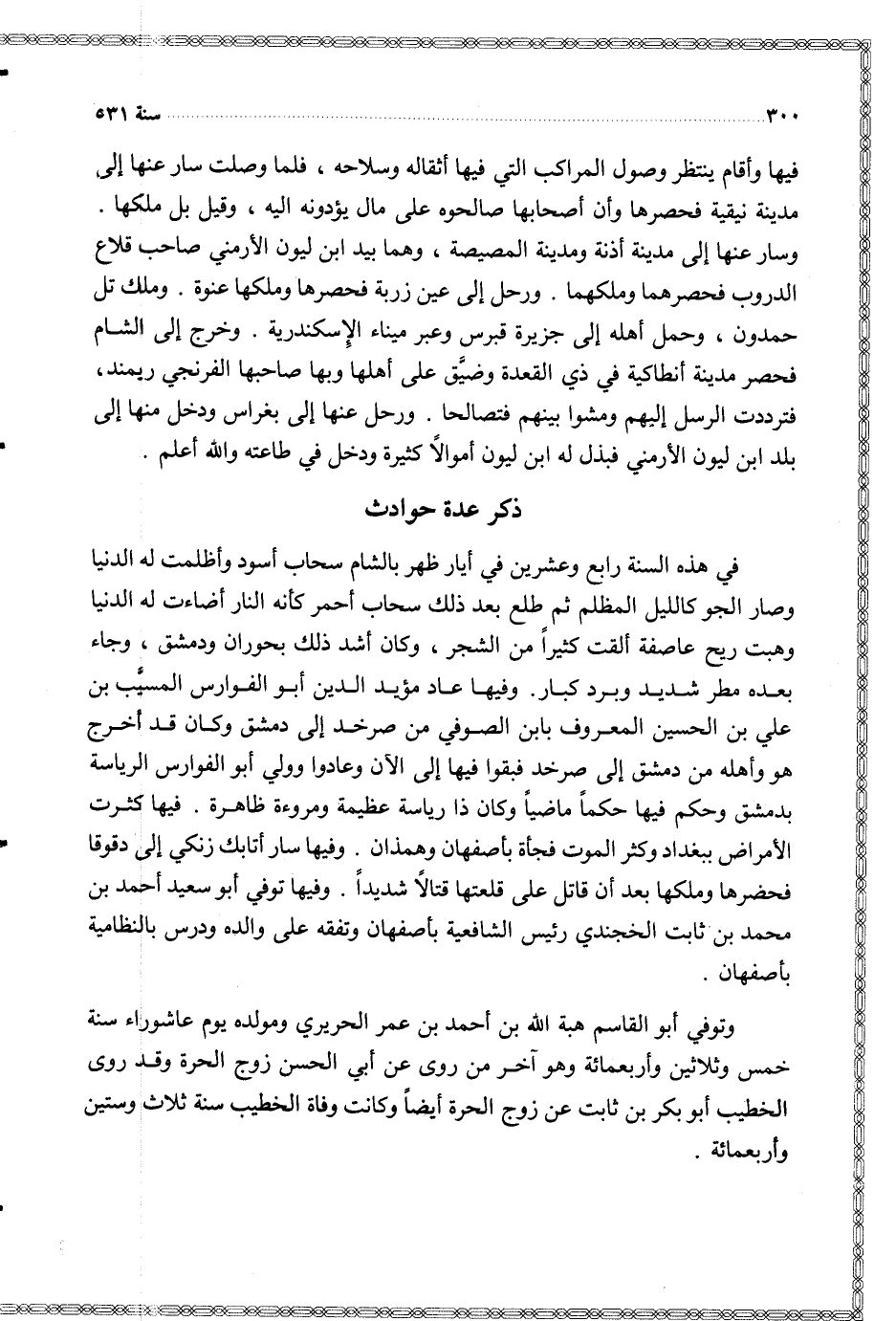 وتوفي أبو القاسم هبة الله بن أحمد بن عمر الحريري ومولده يوم عاشوراء سنة خمس وثلاثين وأربعمائة وهو آخر من روى عن أبي الحسن زوج الحرة وقد روى الخطيب أبو بكر بن ثابت عن زوج الحرة أيضا وكانت وفاة الخطيب سنة ثلاث وستين وأربعمائة