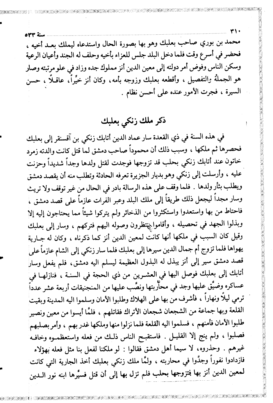 $ ذكر ملك زنكي بعلبك $