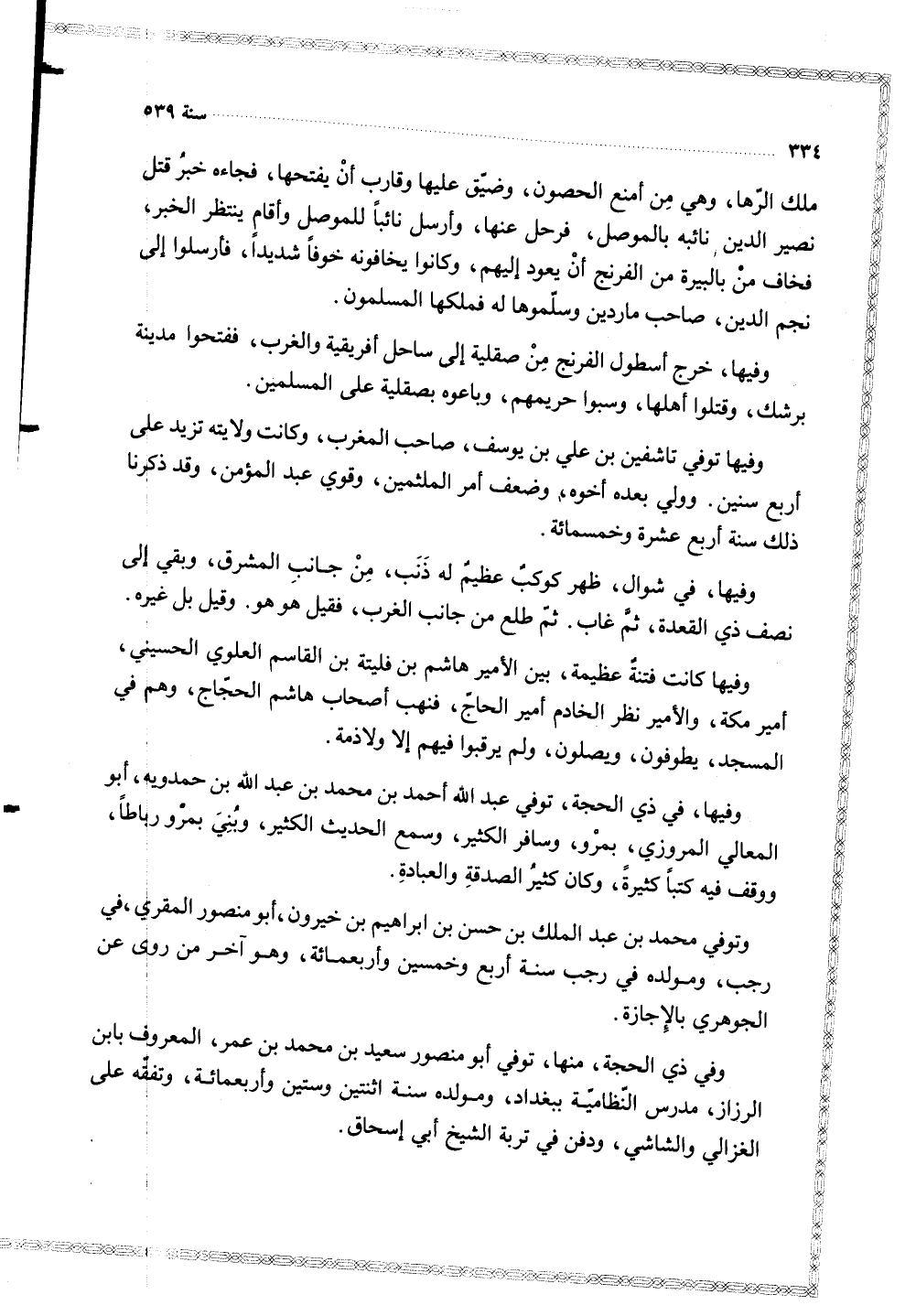 وفيها توفي تاشفين بن علي بن يوسف صاحب المغرب وكانت ولايته تزيد على أربع سنين