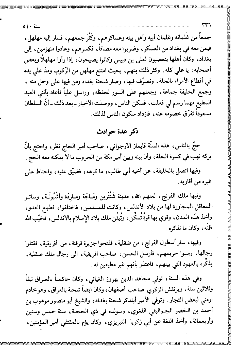 ونوفي الأمير أيلدكر شحنة بغداد والشيخ أبو منصور موهوب بن أحمد بن الخضر الجوليقي اللغوي ومولده في ذي الحجة سنة خمس وستين وأربعمائة وأخذ اللغة عن أبي زكريا التبريزي وكان يؤم بالمقتفي أمير المؤمنين