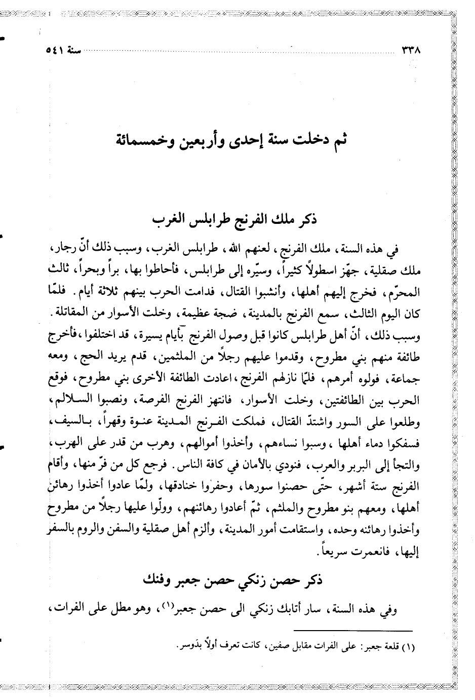 $ ذكر حصن زنكي حصن جعبر وفنك $
