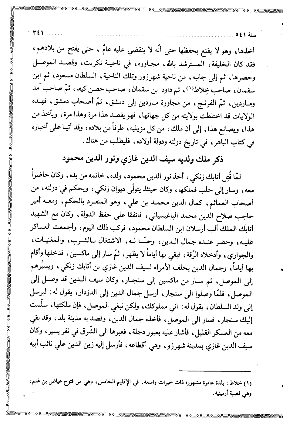 $ ذكر ملك ولديه سيف الدين غازي ونور الدين محمود $