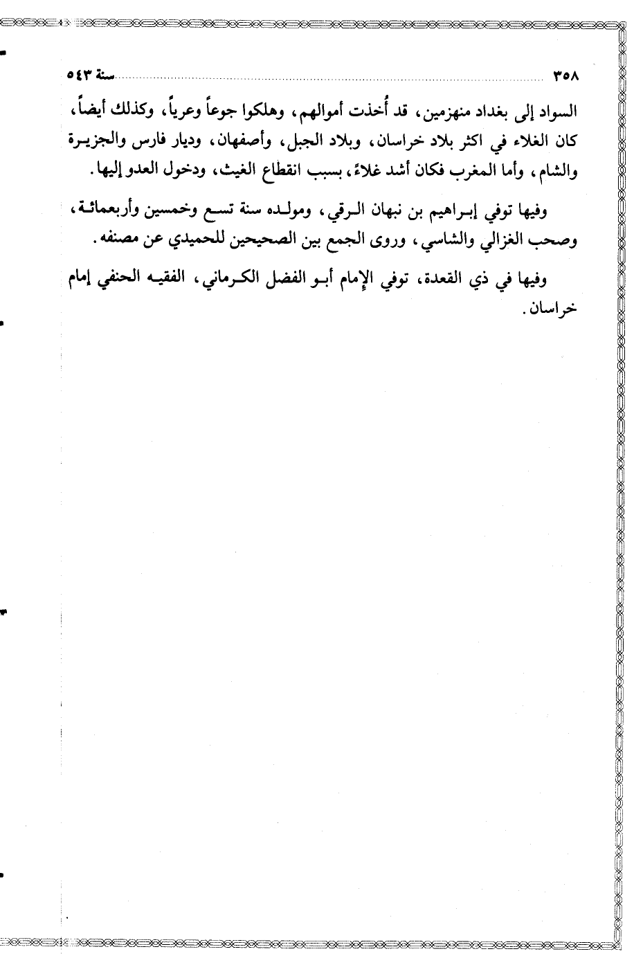 وفيها في ذي القعدة توفي الإمام أبو الفضل الكرماني الفقيه الحنفي إمام خراسان