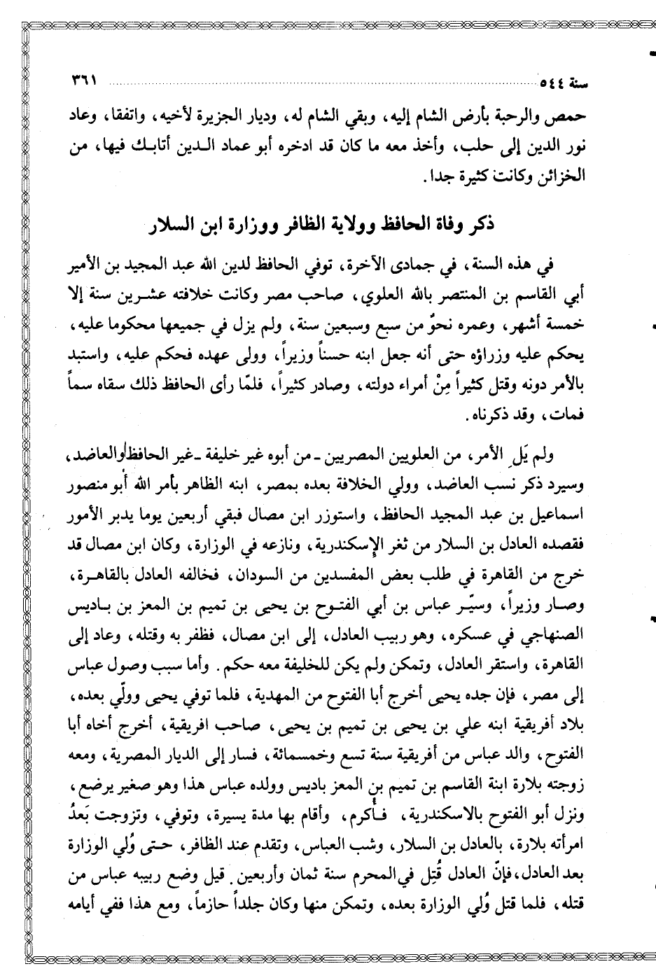 $ ذكر وفاة الحافظ وولاية الظافر ووزارة ابن السلار $