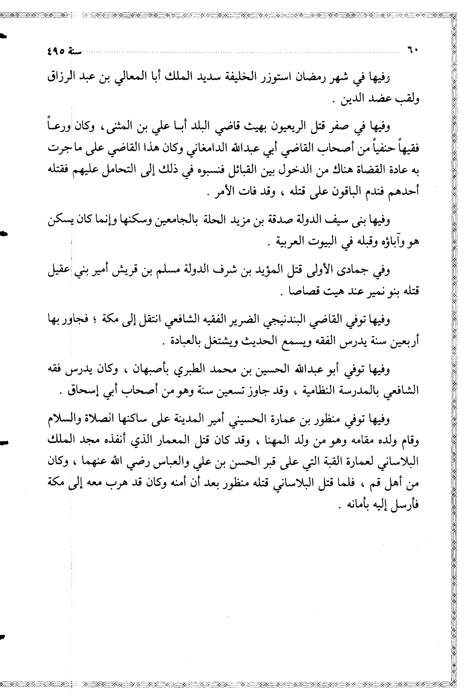 وفيها في شهر رمضان استوزر الخليفة سديد الملك أبا المعالي بن عبد الرزاق ولقب عضد الدين