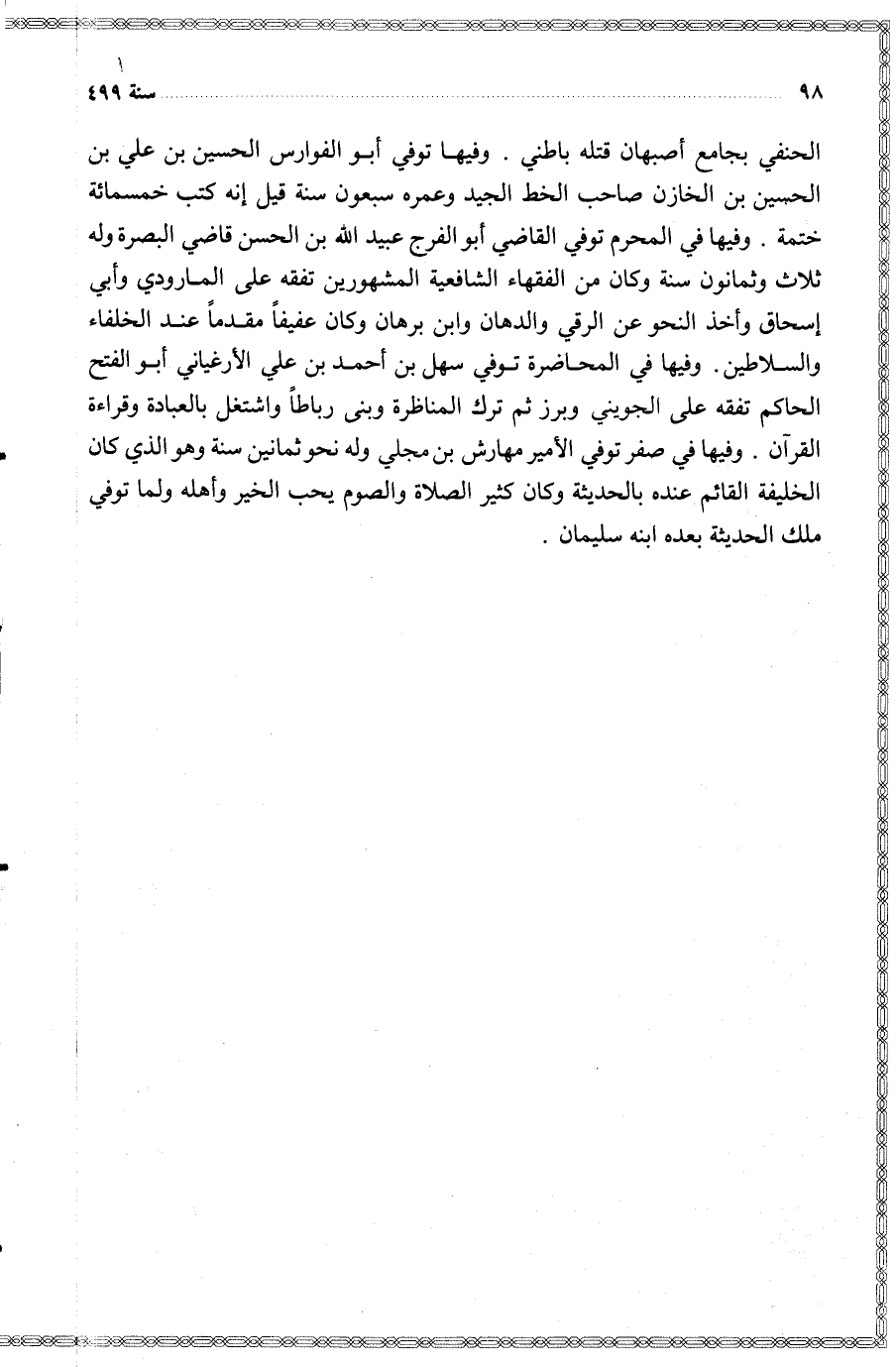 وفيها في المحاضرة توفي سهل بن أحمد بن علي الأرغياني أبو الفتح الحاكم تفقه على الجويني وبرز ثم ترك المناظرة وبنى رباطا واشتغل بالعبادة وقراءة القرآن