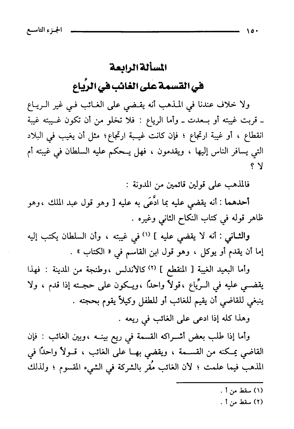 المسألة الرابعة في القسمة على الغائب في الرِّياع