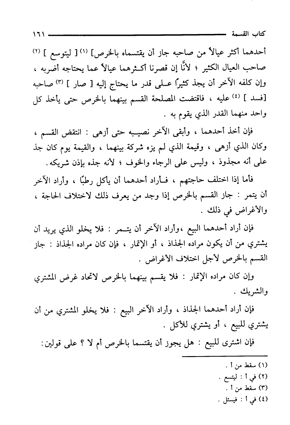 فأما إذا اختلف حاجتهم، فأراد أحدهما أن يأكل رطبًا، وأراد الآخر أن يتمر: جاز القسم بالخرص إذا وجد من يعرف ذلك لاختلاف الحاجة، والأغراض في ذلك.