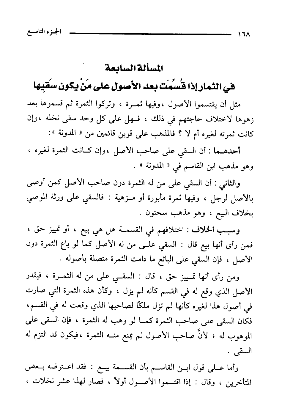 المسألة السابعة في الثمار إذا قُسِّمَت بعد الأصول على مَنْ يكون سَقيِها