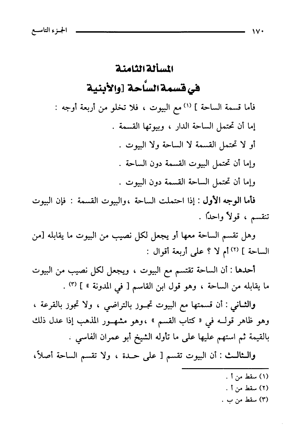 المسألة الثامنة في قسمة الساحة [والأبنية