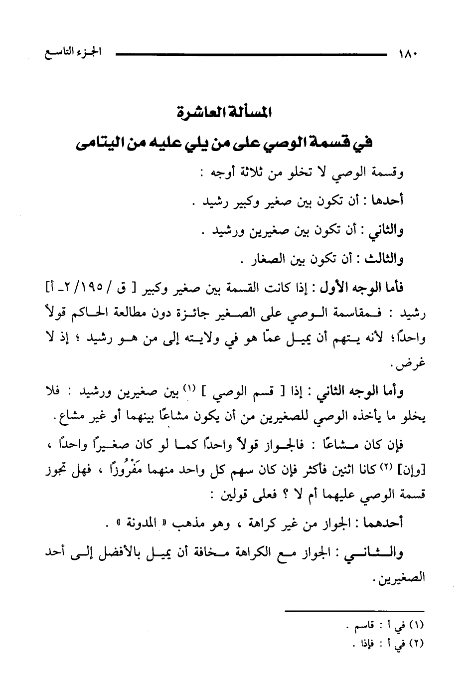 المسألة العاشرة في قسمة الوصي على من يلي عليه من اليتامى