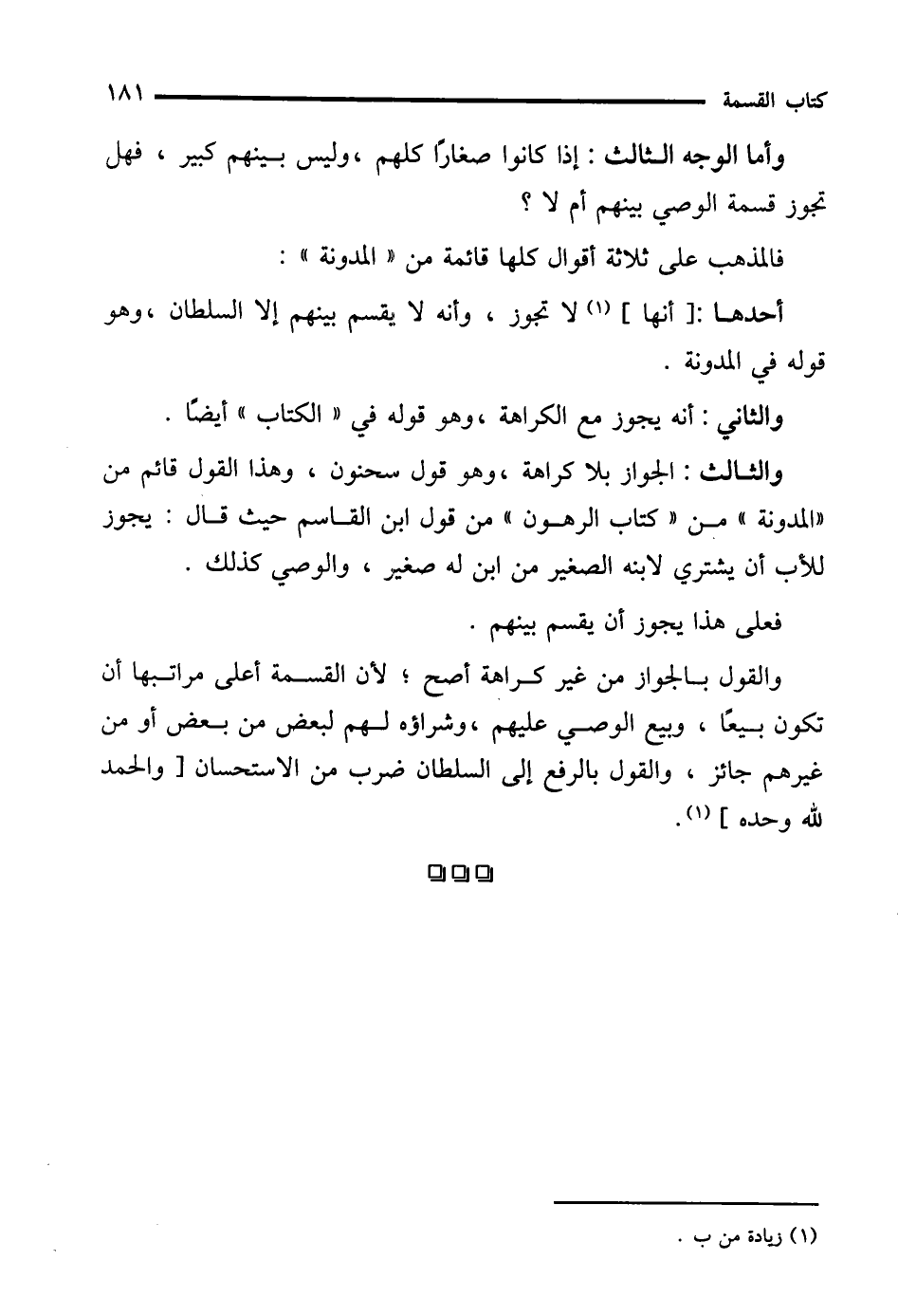 والقول بالجواز من غير كراهة أصح؛ لأن القسمة أعلى مراتبها أن تكون بيعًا، وبيع الوصي عليهم، وشراؤه لهم لبعض من بعض أو من غيرهم جائز، والقول بالرفع إلى السلطان ضرب من الاستحسان [والحمد لله وحده].