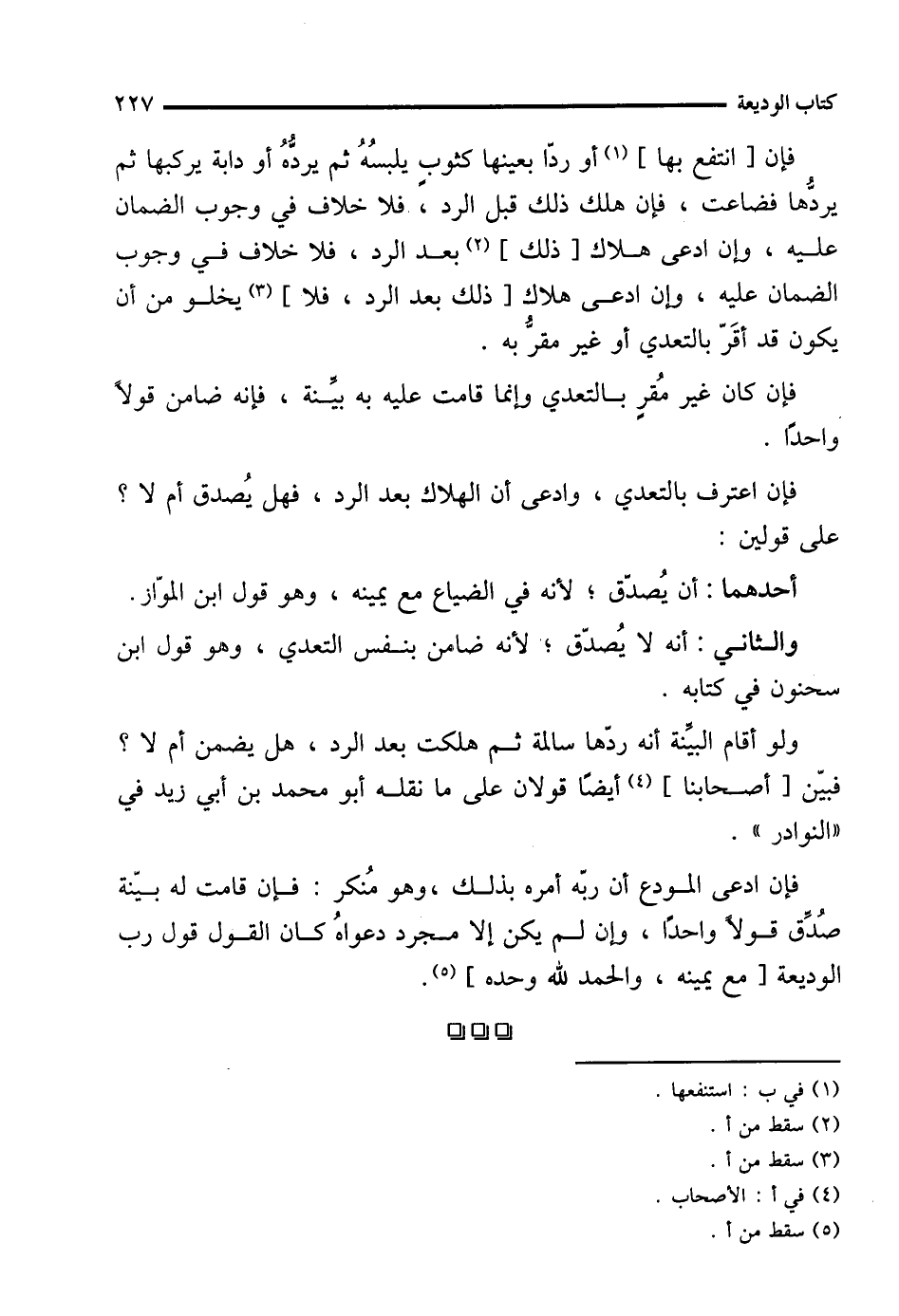 ولو أقام البيِّنة أنه ردّها سالمة ثم هلكت بعد الرد، هل يضمن أم لا؟ فبيّن [أصحابنا] (¬4) أيضًا قولان على ما نقله أبو محمَّد بن أبي زيد في "النوادر".