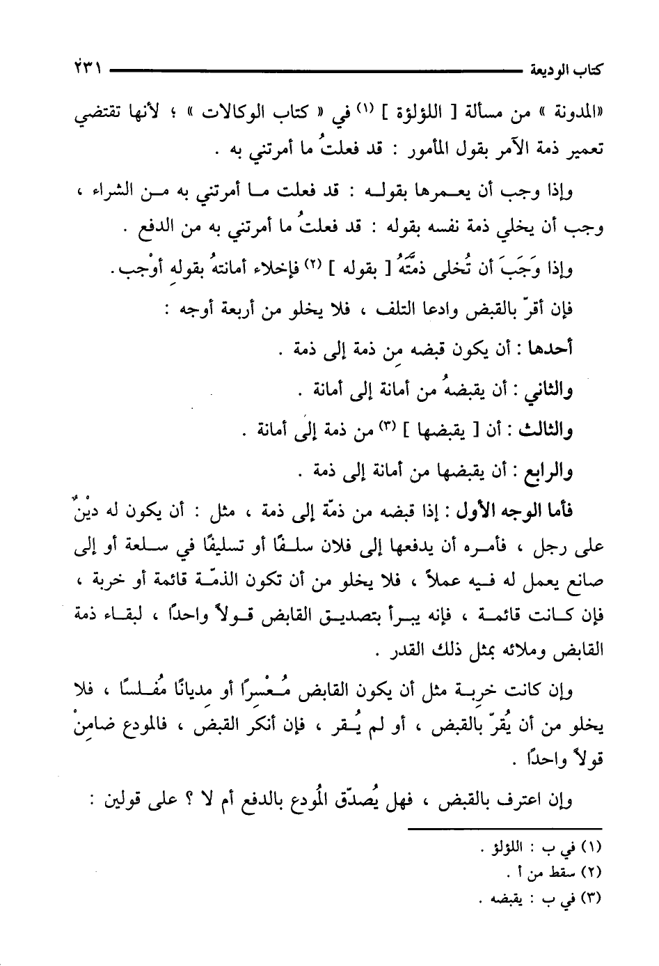 والثالث: أن [يقبضها] (¬3) من ذمة إلىَ أمانة.