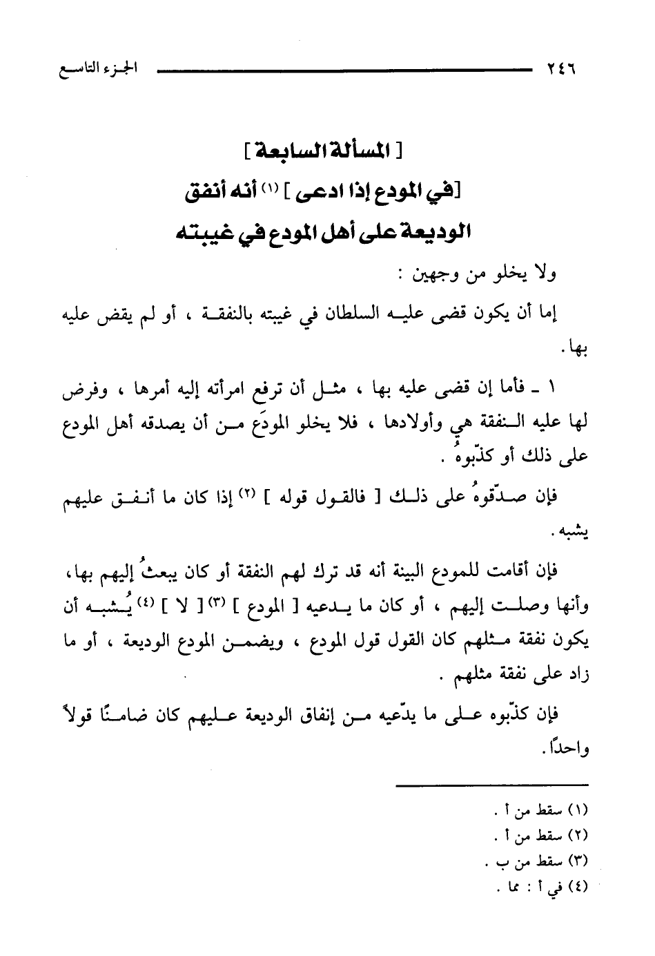 فإن أقامت للمودع البينة أنه قد ترك لهم النفقة أو كان يبعثُ إليهم بها، وأنها وصلت إليهم، أو كان ما يدعيه [المودع] (¬3) [لا] (¬4) يُشبه أن يكون نفقة مثلهم كان القول قول المودع، ويضمن المودع الوديعة، أو ما زاد على نفقة مثلهم.
