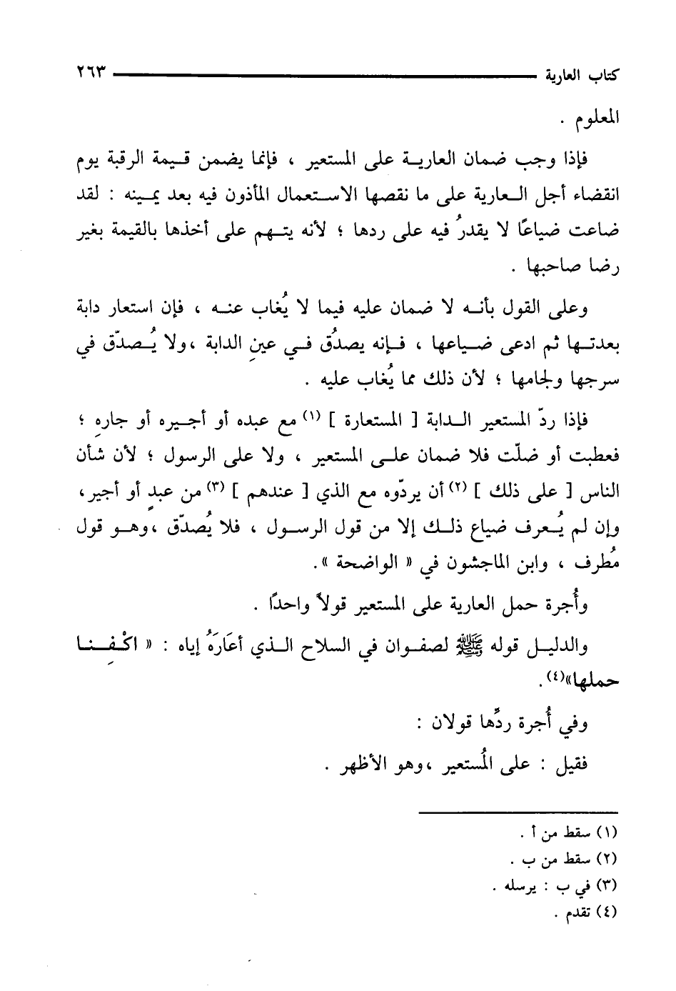 والدليل قوله - صلى الله عليه وسلم - لصفوان في السلاح الذي أعَارَهُ إياه: "اكْفِنا حملها" (¬4).