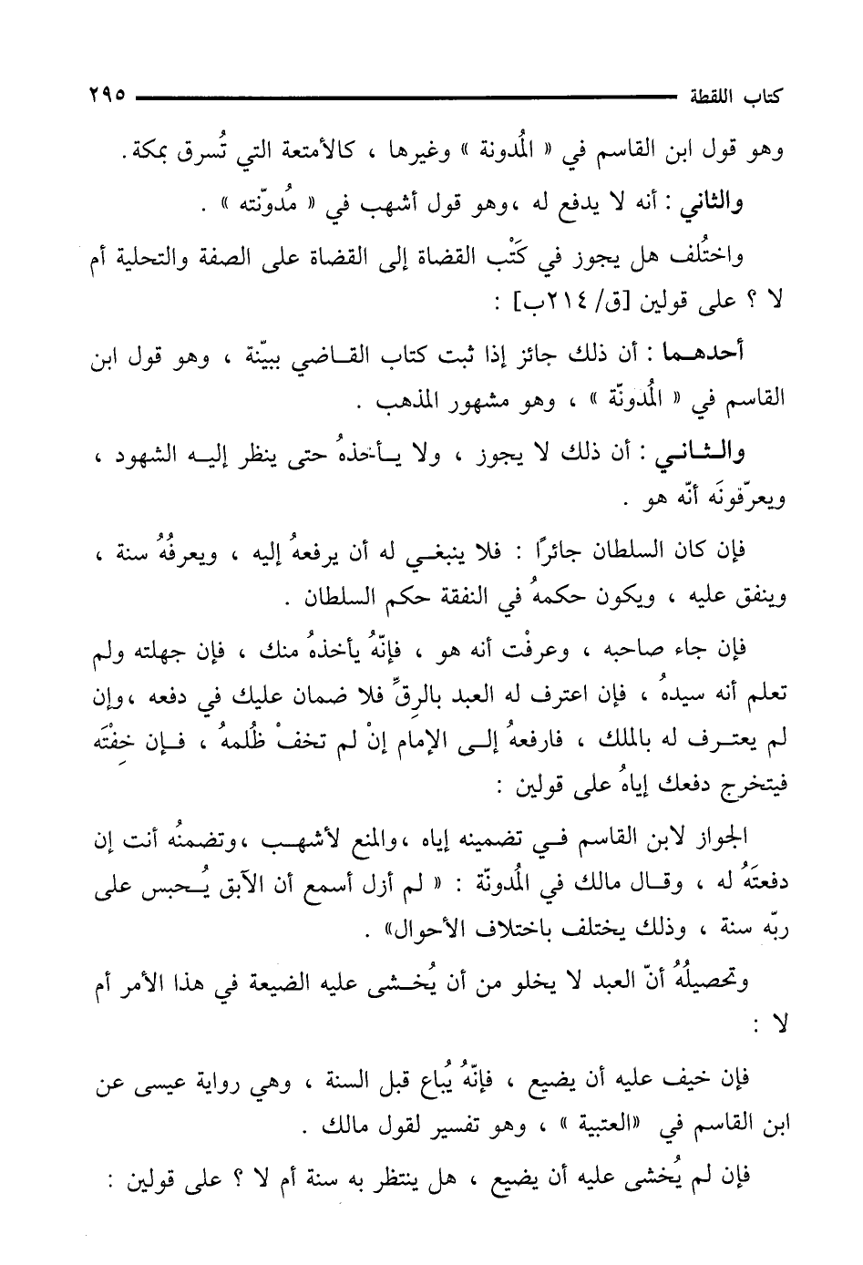 فإن لم يُخشى عليه أن يضيع، هل ينتظر به سنة أم لا؟ على قولين: