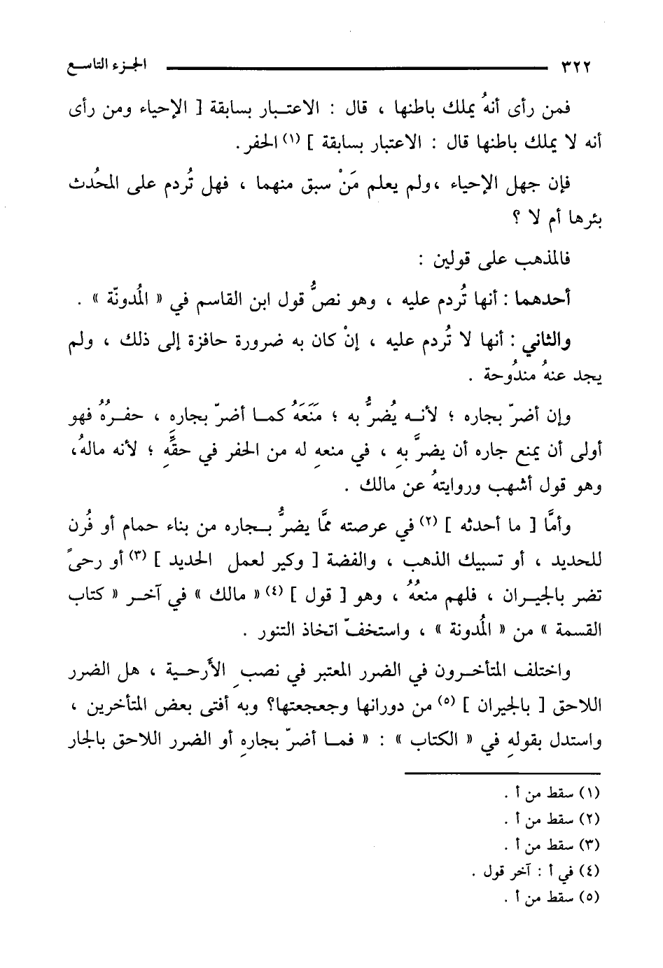 فمن رأى أنهُ يملك باطنها، قال: الاعتبار بسابقة [الإحياء ومن رأى أنه لا يملك باطنها قال: الاعتبار بسابقة] (¬1) الحفر.