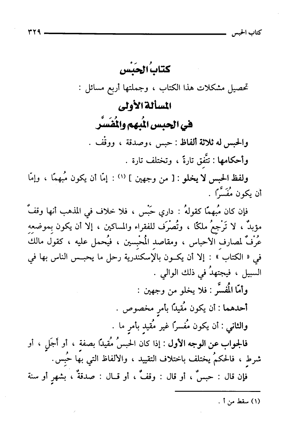 المسألة الأولى في الحبس المُبهم والمُفَسَّر